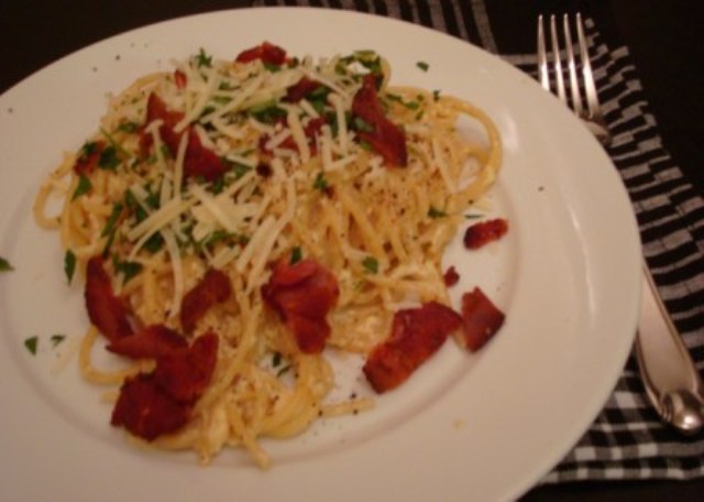 In many parts of the country four feet of snow is not a big deal. The problem in DC is that we simply don’t know how to handle it because it is unusual to get this much snow. Yes, I know what you are thinking, I should be grateful I don’t have to go to work. To that I say, at some point you have to go out and do something. And I would if I could, believe me! I’m glad The Shining is not available to watch instantly on Netflix. Need comfort food. Spaghetti Carbonara to the rescue!
