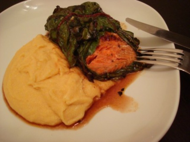 Swiss Chard Wrapped Salmon with Soft Polenta