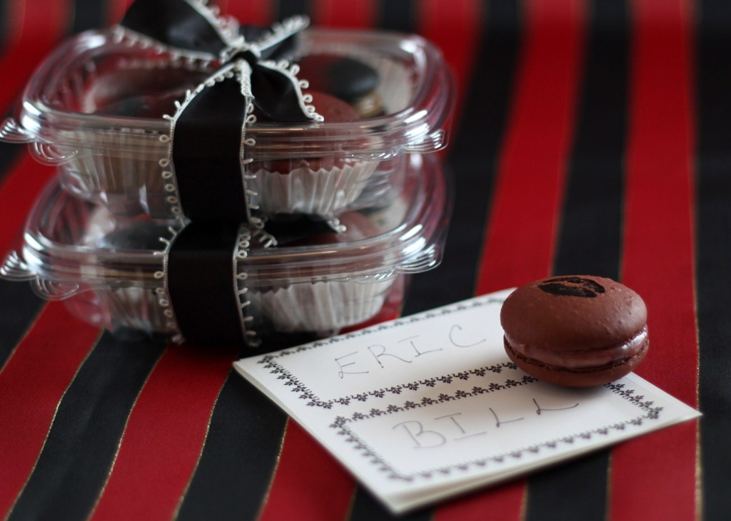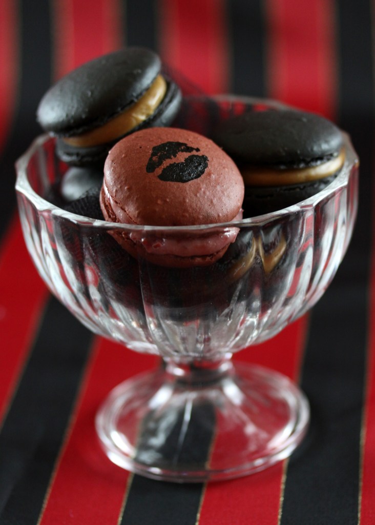 Jane–Thanks, I used a rubber stamp and black gel food coloring for the lips. At first I was afraid I would crush the macarons, but it worked out quite well.