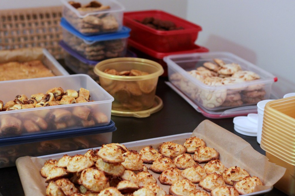 This year I planned to do my baking over one weekend. The trick is to be well organized. I make an excel spreadsheet calculating the total amount of ingredients I need for each recipe. That way there are no surprises and I don’t end up running out of sugar or butter. There is also an excel spreadsheet to keep track of all the containers that I will need, which container goes to whom, and how many cookies need to go in each container.
