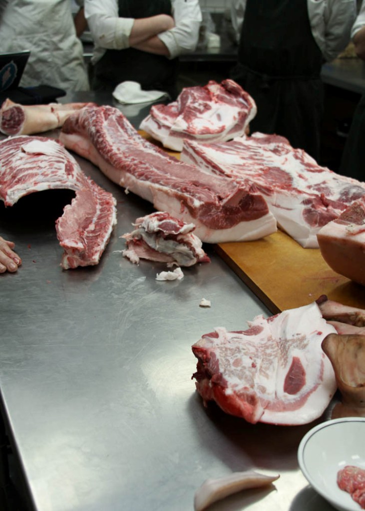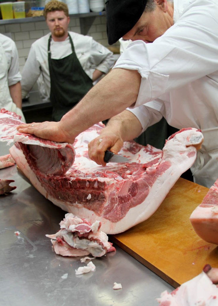 On day two, we had 4 sides to work on. It was now our turn to grab the butchering knives and practice what Dominique had demonstrated the day before.