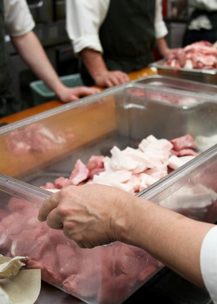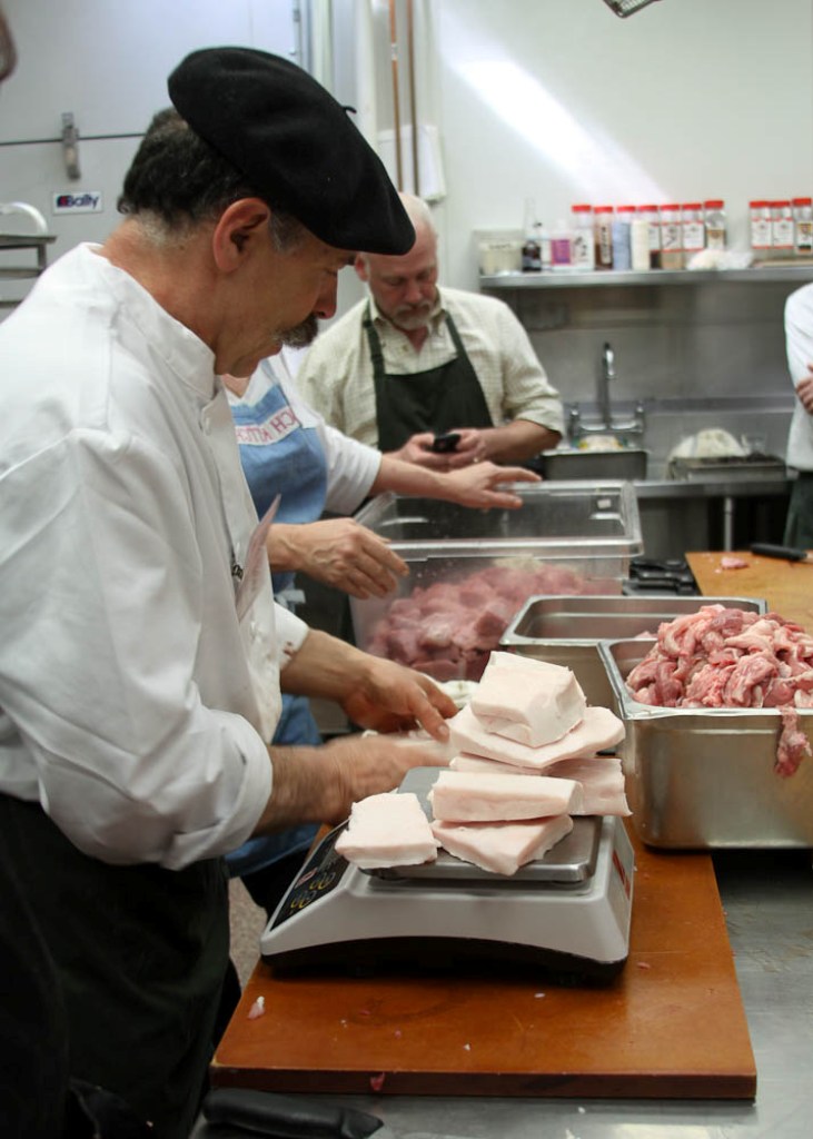We then moved on to saucisson. Back fat was carefully cleaned, only ivory-white pieces were used.