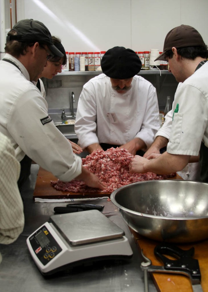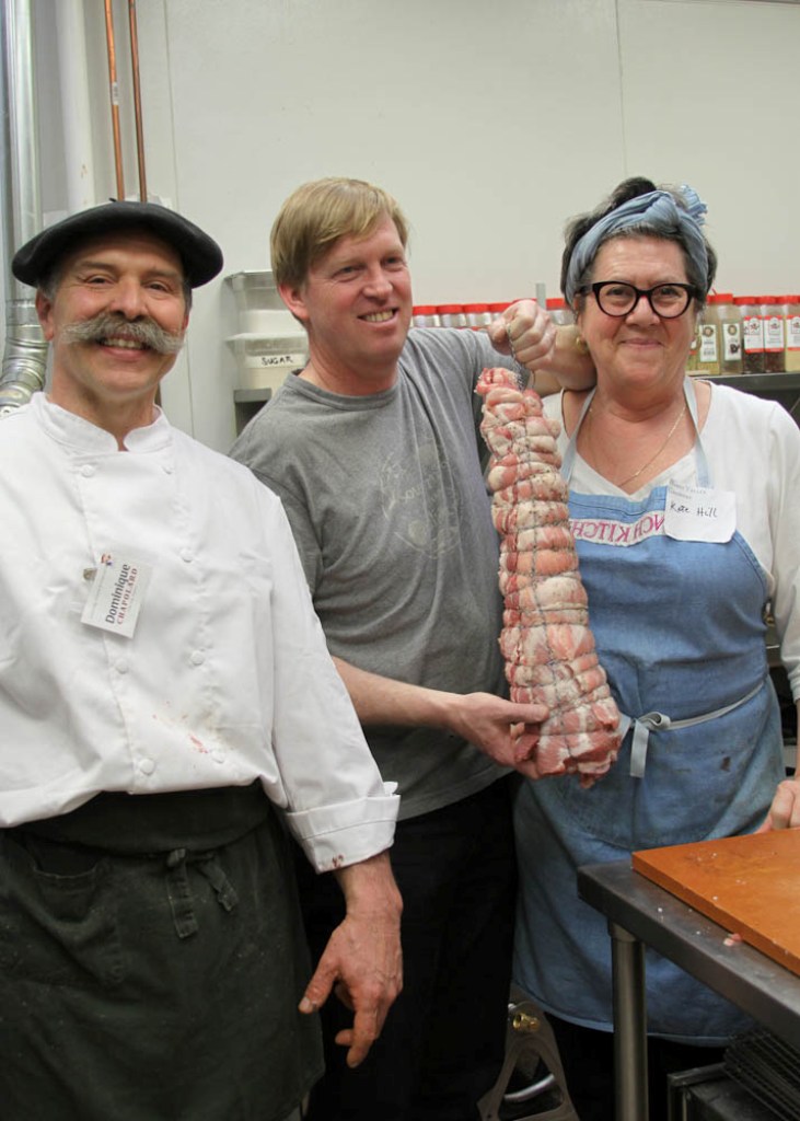 Last week I had the opportunity to attend a Cochon and Charcuterie Workshop with Kate Hill and Dominique Chapolard. Kate Hill is one our charcutepalooza sponsors, she runs a cooking school in Gascony. Dominique Chapolard runs farm Baradieu with his family, where they grow all the feed for their pigs, produce fresh cuts and make artisan charcuterie products which they sell at their local farmers markets. Kate and Dominique have such passion about what they do, and it is contagious. The workshop took place at Woodberry Kitchen Restaurant in Baltimore, MD.