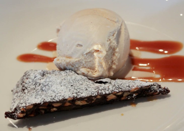 Finally, we enjoyed dessert. Casa Nonna’s pastry chef showed us how to make panforte senese, a classic dessert from Sienna. The panforte senese is a dense and heavy fruitcake made with nuts, candied citrus peel, cocoa, spices, and honey. I’ve had panforte senese before, and it has never been to my liking. This one was different, although it was dense, it was not too sweet and it had just the right amount of citrus peel. I loved it, I think it was great because it was freshly baked and was served with hazelnut ice cream.