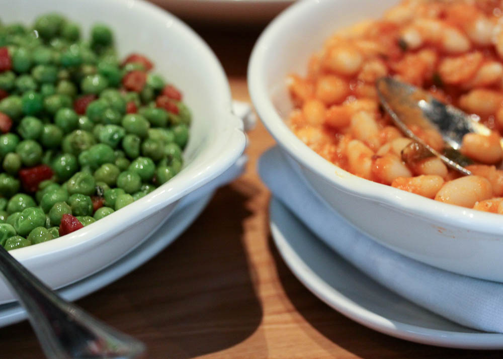 We were also served side dishes of peas with pancetta and garlic and beans.