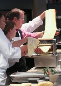 The class was more of a cooking demo than a hands on class. We did have the opportunity to participate if we wanted. Here some class attendants help in rolling out the pasta dough.