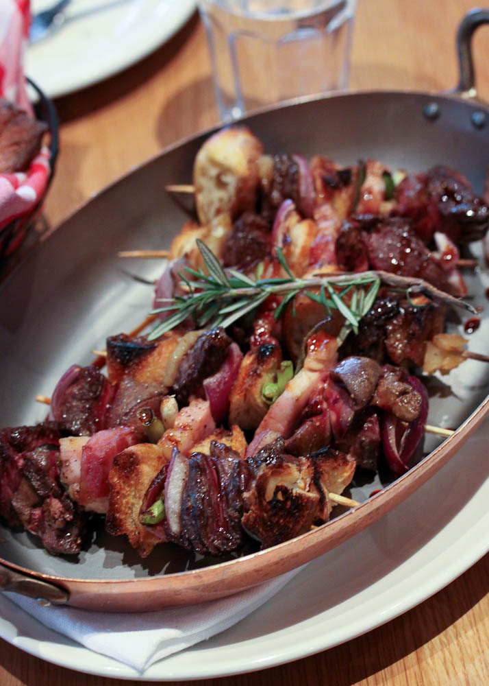 The spiedini was my favorite dish. The hanger steak and liver were perfectly cooked, and the fat from the pancetta kept all the ingredients moist and helped them to brown beautifully.