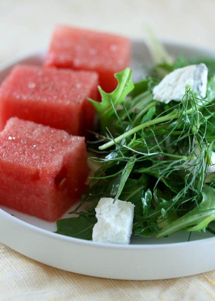 I love the surprisingly wonderful combination that watermelon and goat cheese make; I look forward to trying it with mint… so refreshing.