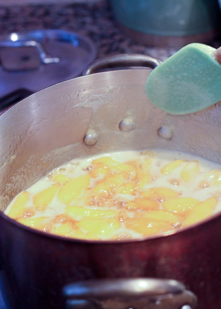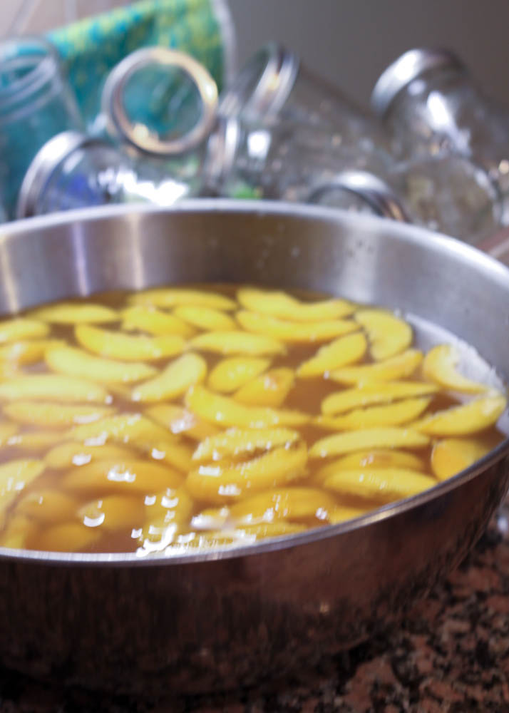 While we made the peach pie filling, additional peaches rested in acidulated water waiting to become peach & lemon verbena preserves.
