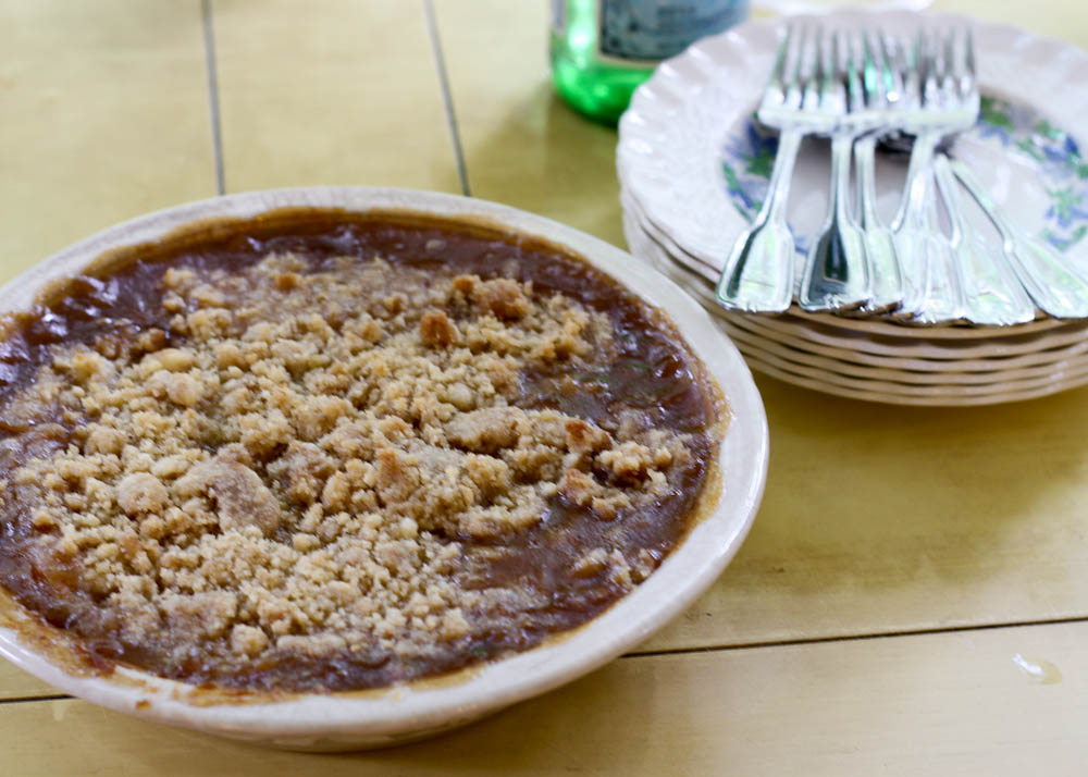 While the peach pie filling was processing in the water bath, we took a short break to enjoy some peach crisp.