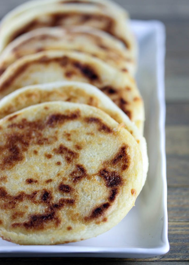 Have you ever tried an arepa? They are a staple of Salvadorean, Colombian, and Venezuelan cuisine. In El Salvador, they are called pupusas and are stuffed with cheese, chicharron (pork belly), beans, and served with a cabbage relish. In Colombia, they are served with cheese, and in the traditional dish Bandeja Paisa. In Venezuela, they are opened and stuffed with carne mechada (shredded skirt steak).