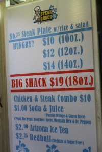 If you are like me and you take forever to decide on what item to have from a menu, Steak Shack makes it easy for you: one item, five sizes. Your only decisions really are: size, type of dressing on your salad, and whether to add more of the magnificent house-made teriyaki sauce to your plate. You order your food, sit at an outdoor table overlooking the beach, and enjoy.