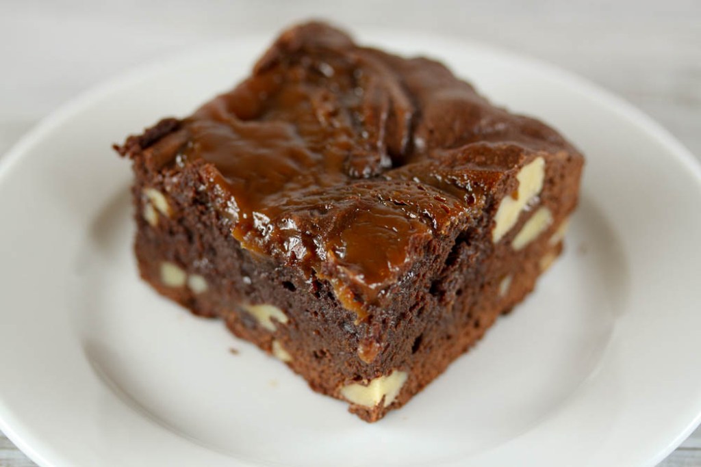 I’m not a big fan of chocolate desserts, but these brownies are luscious and moist. Dulce de leche swirled in the batter gives them a unique twist.