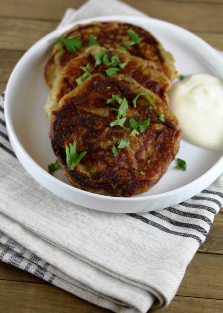 These are great for breakfast, lunch, or dinner. And like anything else, you can customize them and add whatever you like to the mix. These are traditionally garnished with scallions. I didn’t have any on hand so I used parsley instead.