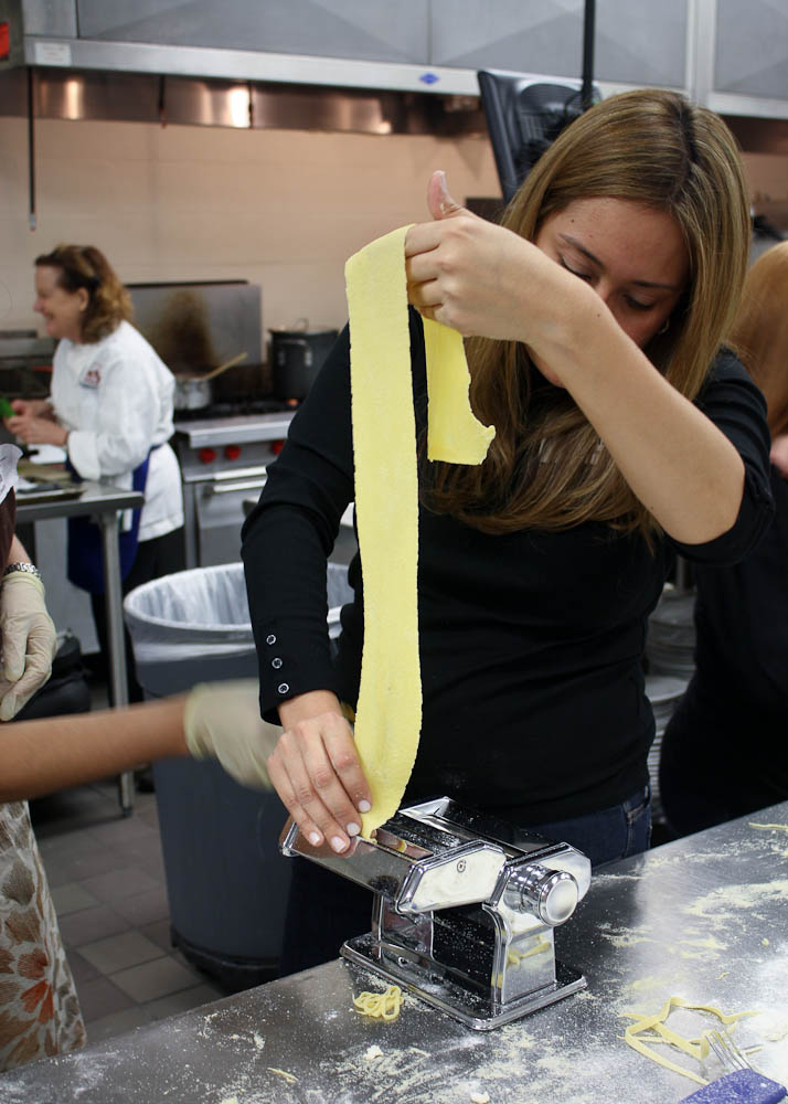 Cutting angel hair pasta (photo courtesy of Olga Berman)