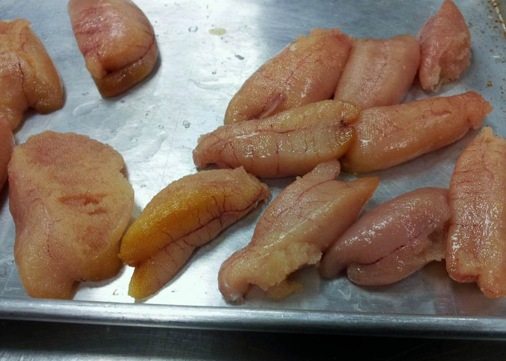 At the end of the day, when Olga and I went back to the kitchen to pick up our pasta, we found Barton Seaver’s session had ended, but he was still in the kitchen filleting perch and removing roe sacs. He quickly demonstrated how to make caviar from the sacks. He broke the sac membrane in a bowl filled with cold salted water. Then he proceeded to separate the eggs from the sac. And next thing we knew, there were glistening eggs sitting atop of a paper towel. It was fascinating to watch him do this difficult task with such ease. I wish I had taken pictures of the whole process. But by that time I was so exhausted and still processing all the information from a day’s worth of sessions.