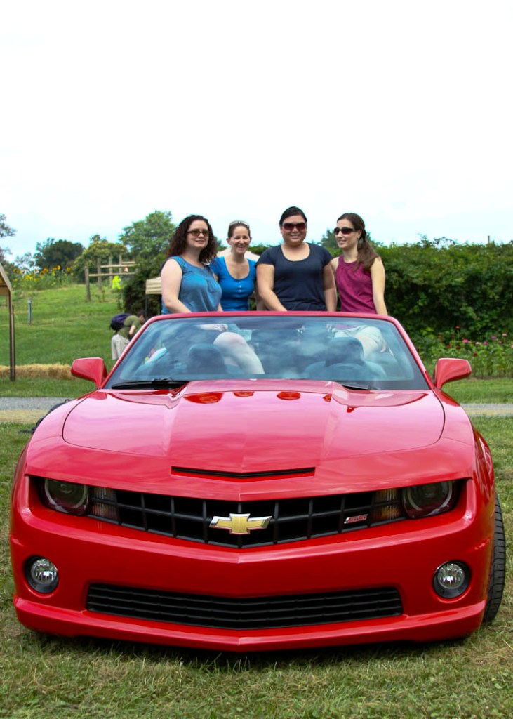 I recently had the chance to spend a whole day with four DC Food Blogger friends and visit three farms in Montgomery County. The day trip was organized by GM Northeast, and they also gave each of us a one week car loan. Above, you can see Olga, Stacey, Sylvie, and Ashley, in Sylvie’s convertible Chevy Camaro!