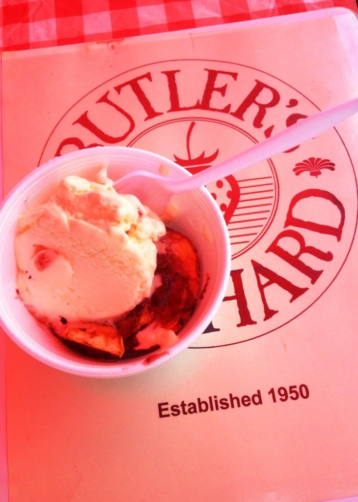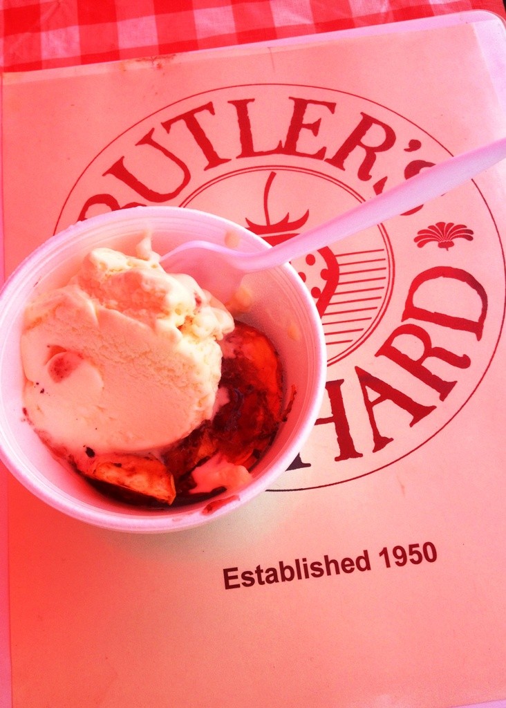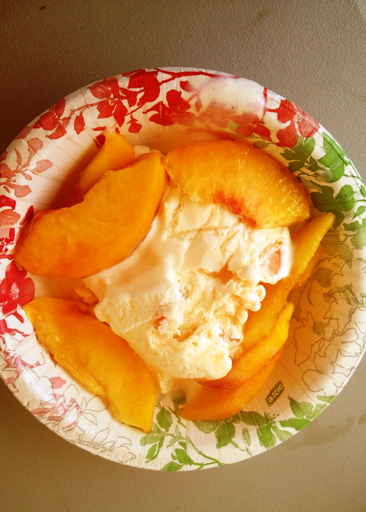 We sampled peach ice cream with fresh peaches. A nice refreshing treat on a hot and humid day.