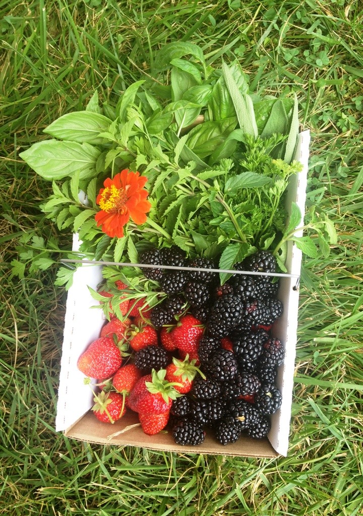 Our first stop was Rock Hill Orchard. Here we picked strawberries, blackberries, herbs, and flowers.