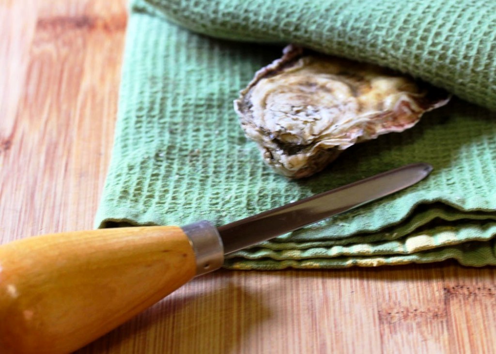 3. Place oyster flat side up on a kitchen towel