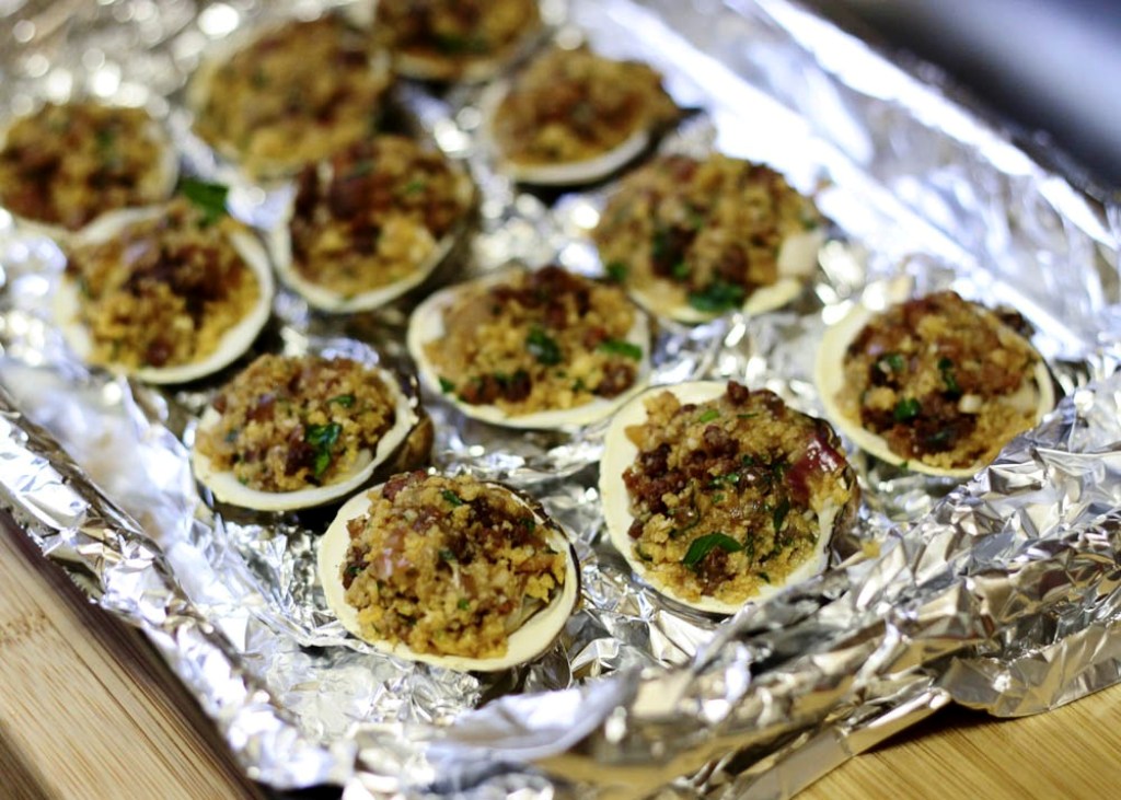 Stuffed clams before broiling:
