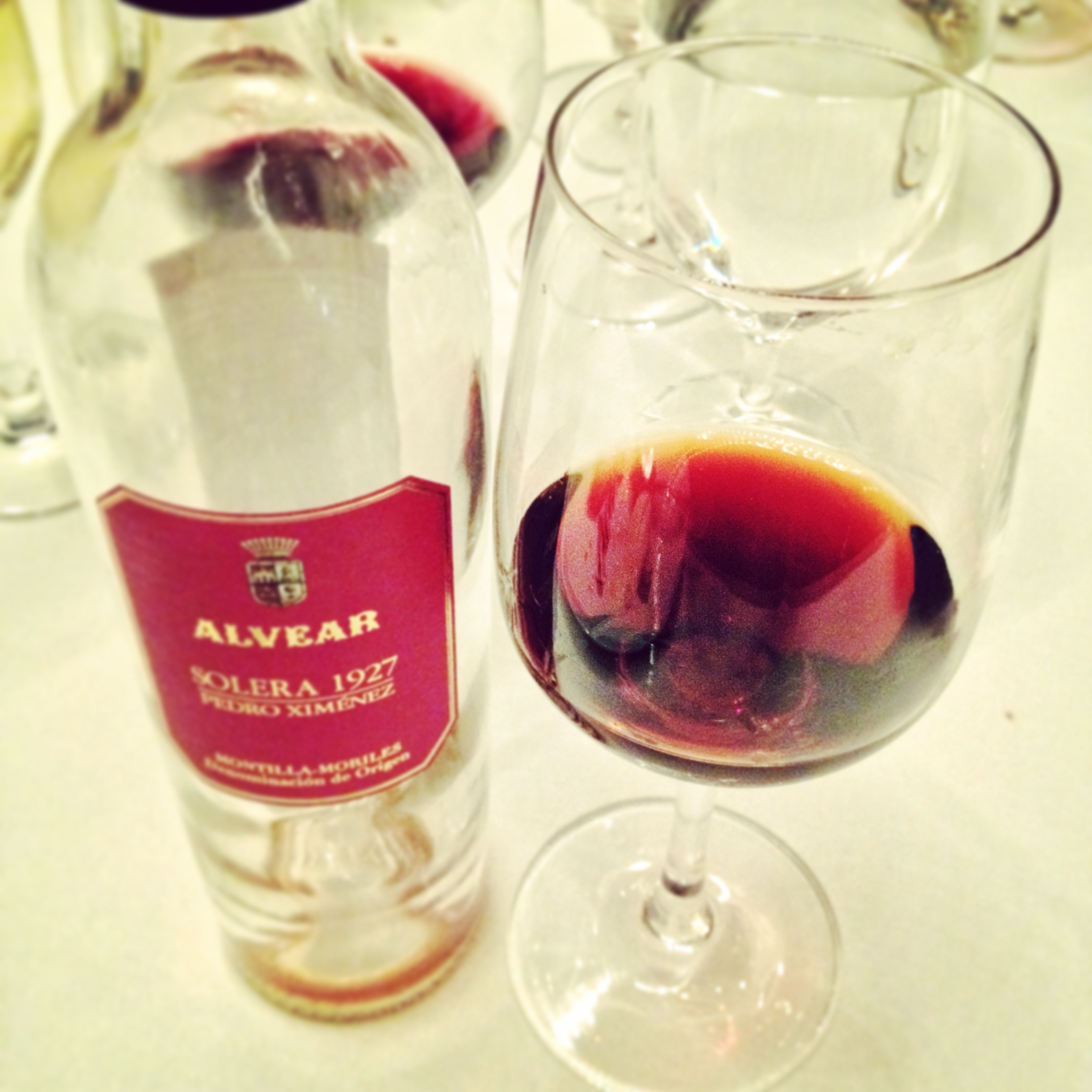 Sommelier Jonathan Schuyler served us a pour of this amazing Pedro Jiménez jerez with dessert. Go buy a bottle now! It’s that good. It was intense, sweet, complex, and a revelation to all of us. A perfect ending to our evening.