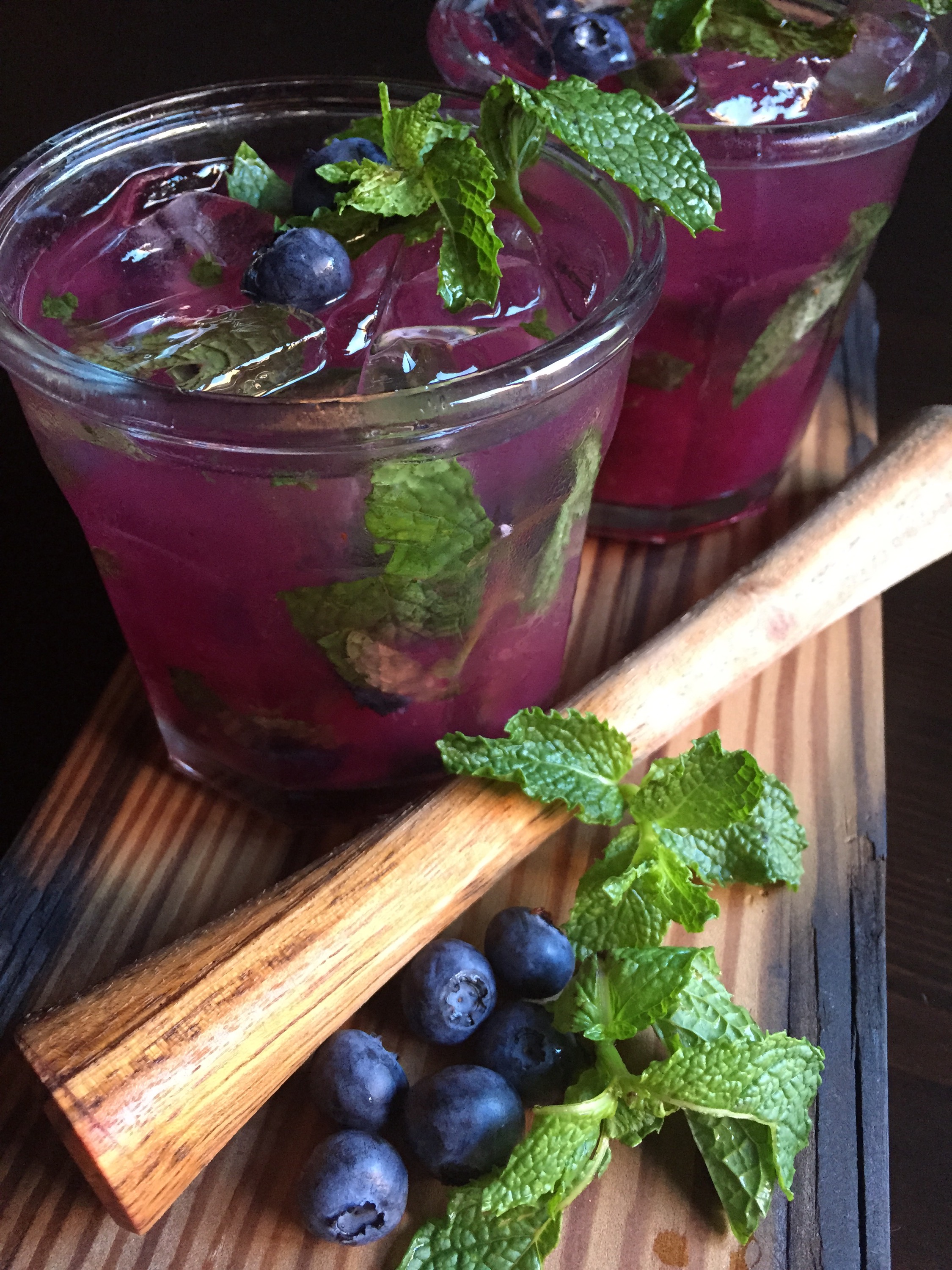 Blueberry mango mojitos have been my cocktail of choice this summer. I first tried them at Cafe Deluxe in Cleveland Park, where they are served in tall 20 ounce glasses. I just had to try making these at home.These mojitos are fruity and refreshing, everything a summer cocktail should be.