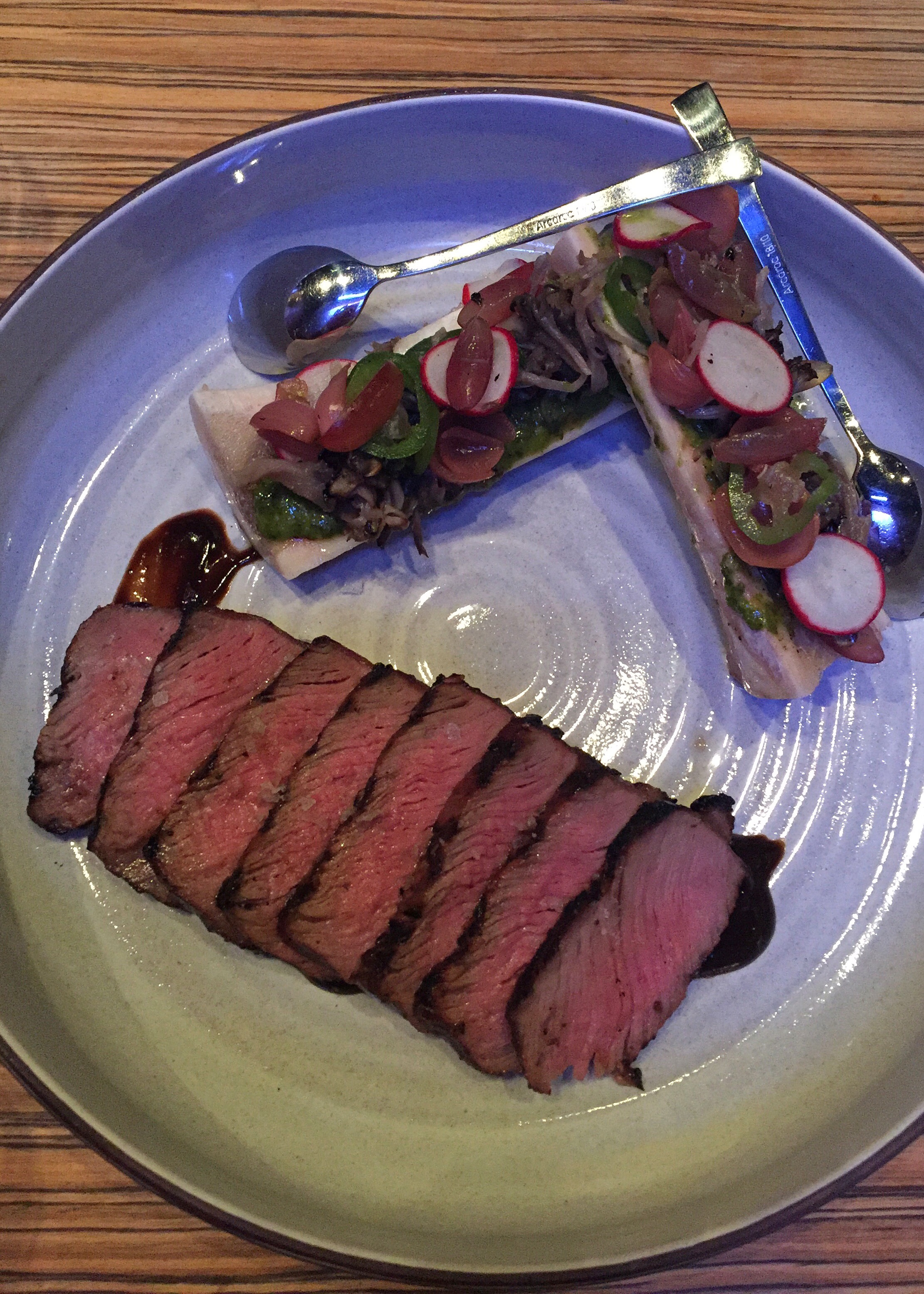 I recently had the opportunity to sample their new menu designed by Chef Ryan Ratino. Chef Ratino recently joined Masa 14, and he has revamped the Latin-Asian menu. New appetizers include tuna sashimi, scallop crudo, Spanish octopus, lamb carpaccio, and house cured & smoked steelhead. There will now be main dishes that are served family style such as the black garlic marinated striploin served with bone marrow, and Korean fried chicken with yucca fries. The striploin is perfectly cooked, and the fried chicken is crisp, tender, with just the right amount of spicy-tart glaze. Desserts include a passion fruit pavlova, and a Nutella tart served with togarashi and salt caramel.