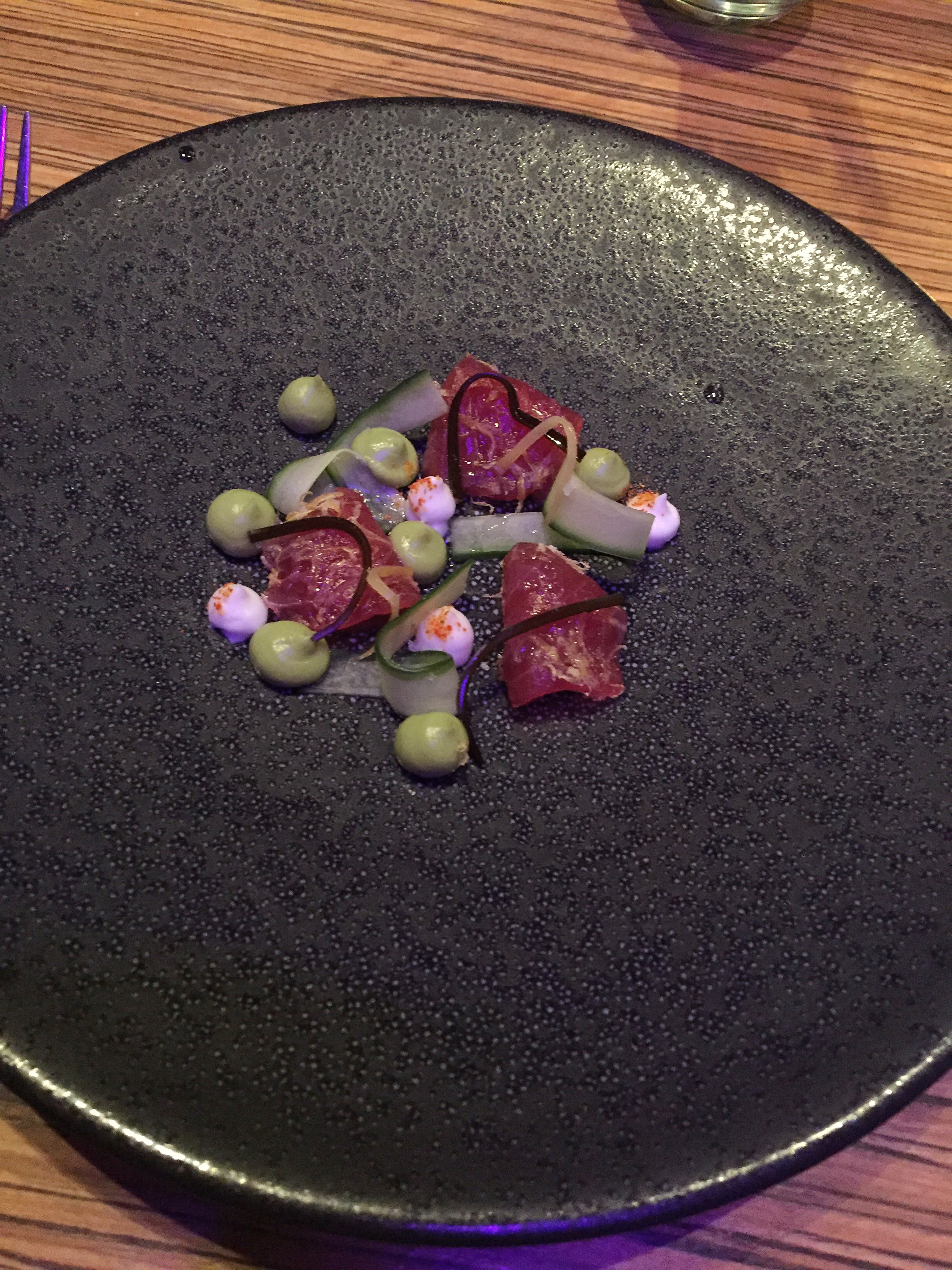 It is clear that Chef Ratino has great attention to detail. He has selected gorgeous new ceramic serveware, and the garnishes on every menu item not only add pops of color to the plating but also perfectly compliment each dish. My favorite garnishes were the olives on the lamb carpaccio, fresh celery leaves on the scallop crudo, and the pickled vegetables served with the striploin. They truly took the dishes to another level.